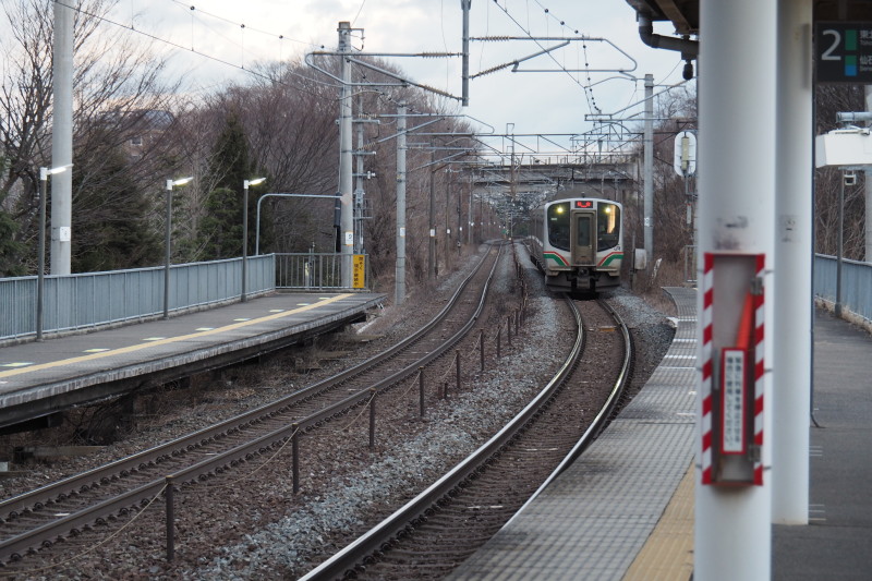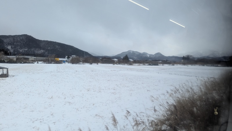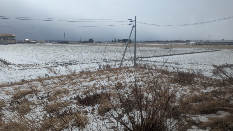 | 仙台駅前。 | 鳴子温泉駅に向かって、だんだん雪が深くなってきます。 | |