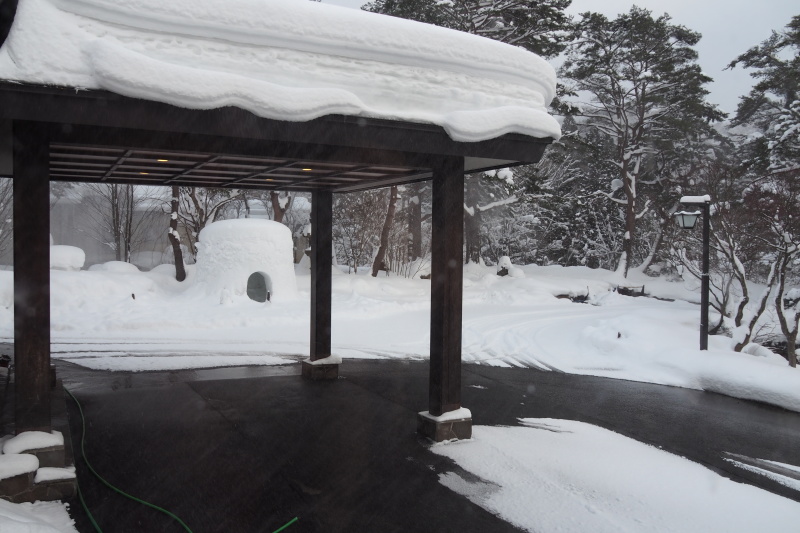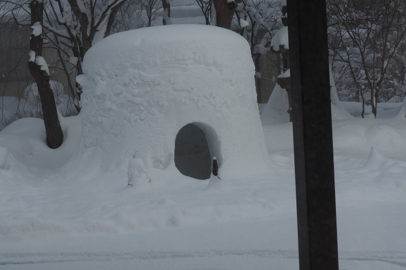 | 玄関脇のかまくら。19人のかまくら職人の人に作ってもらったそうです。 | ||