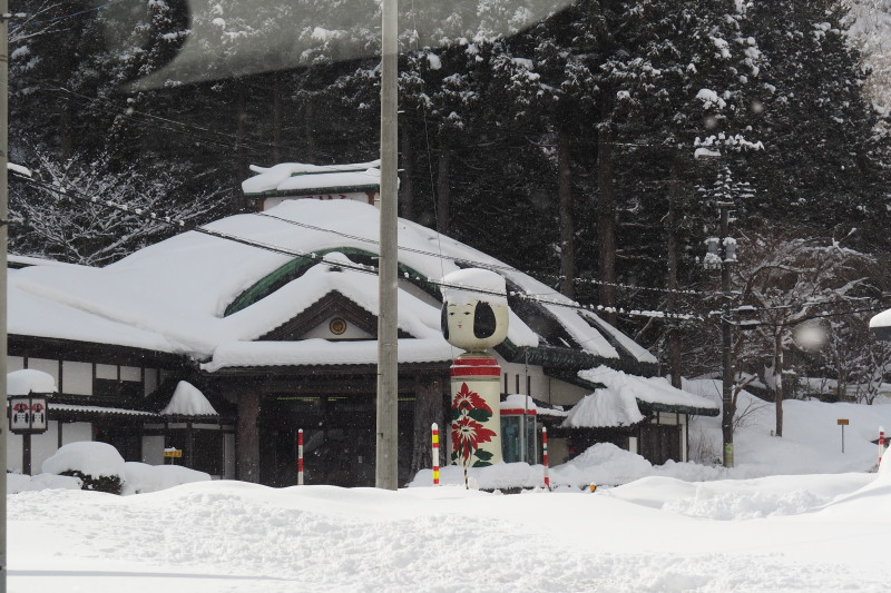| つららがすごい。 | 鳴子温泉駅近くのこけしの家。 | |