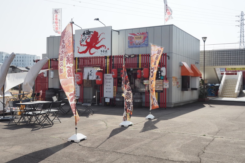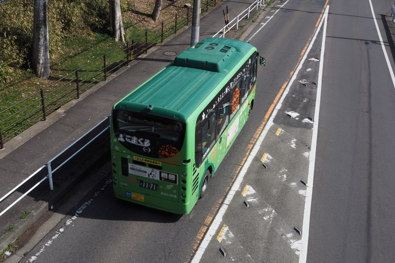 | お昼を食べた店とその前を通る小牧市のバス「こまくる」。 | ||