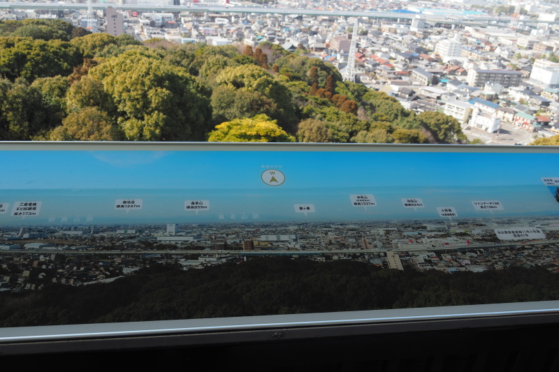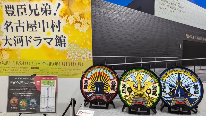| 名古屋駅通路にある大河ドラマ館宣伝のマンホール。 | JRタワー15階から見た景色。 | |