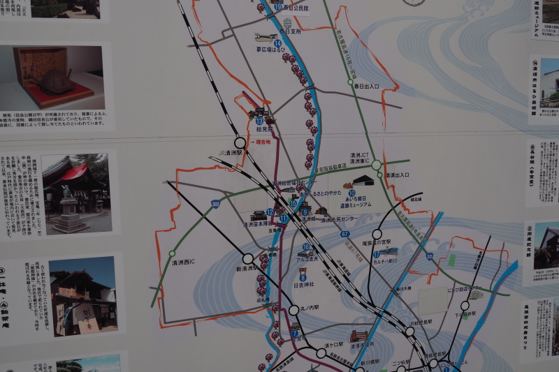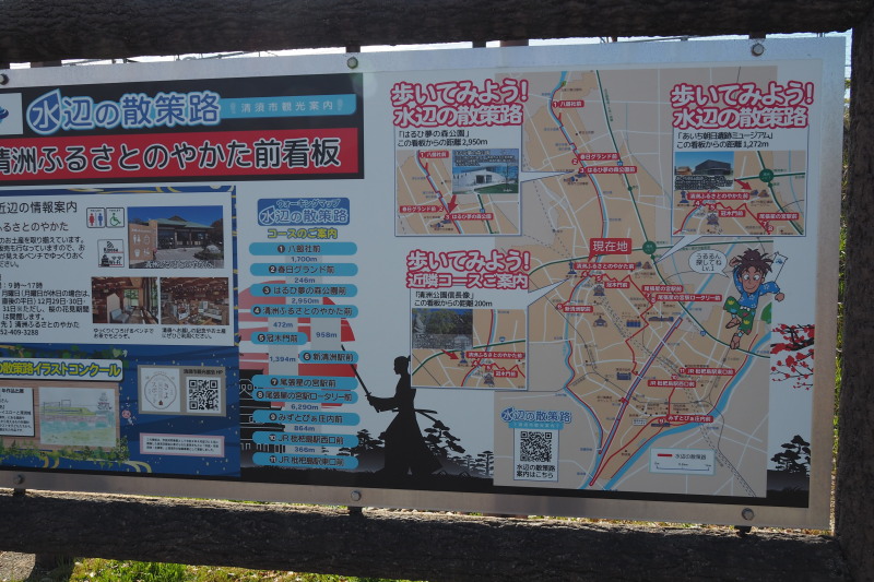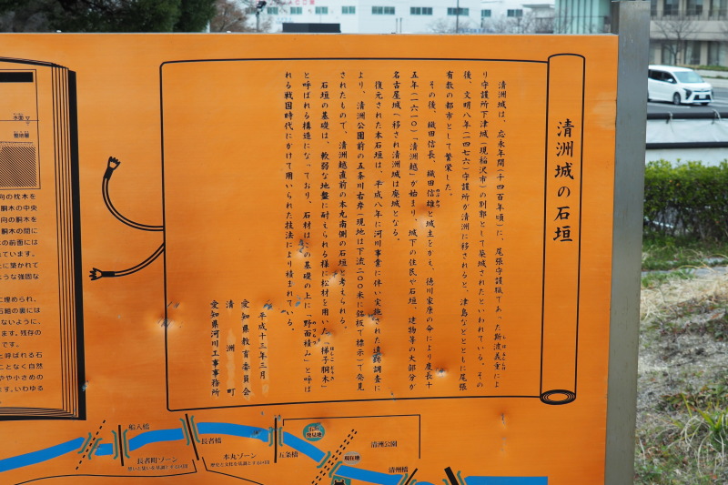 | 清洲城近くにある「水辺の散策路」の看板。 | ||