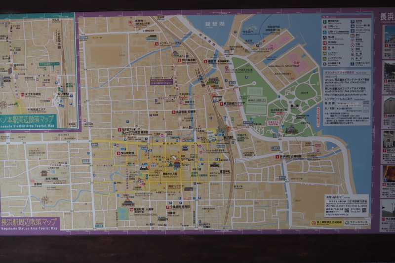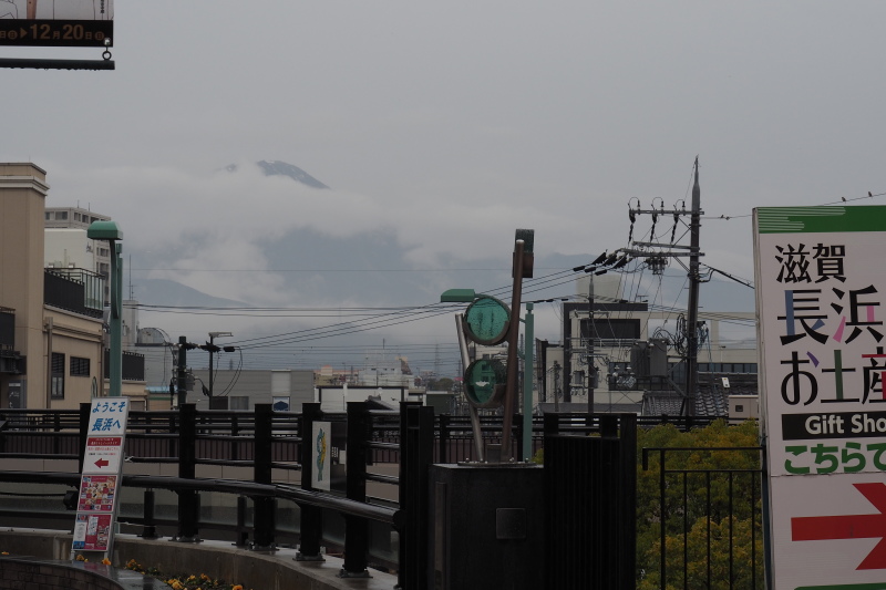 | 長浜駅の地図と、駅から見た伊吹山。 | ||