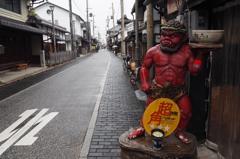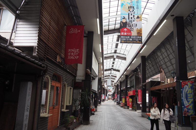 | 北国街道の店頭にあった鬼の像。 | 大手門通りのアーケード。 | |