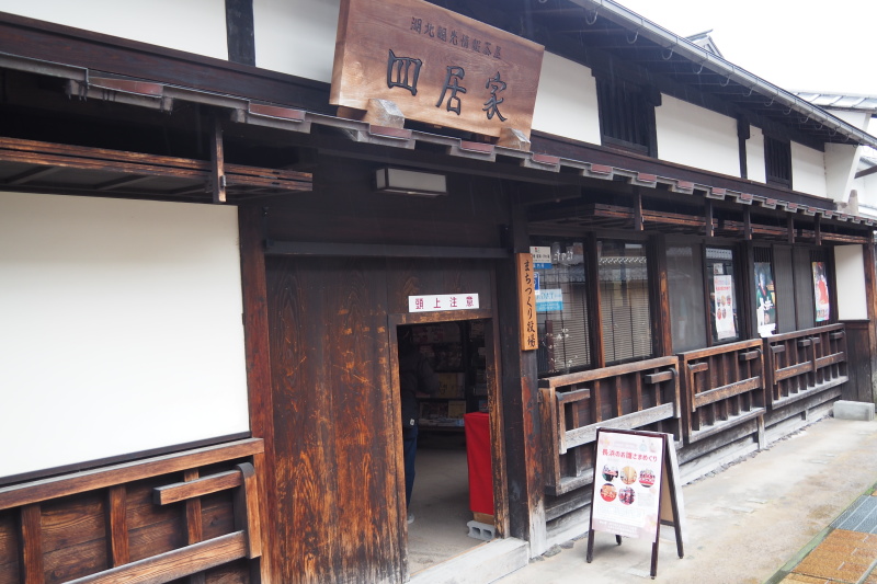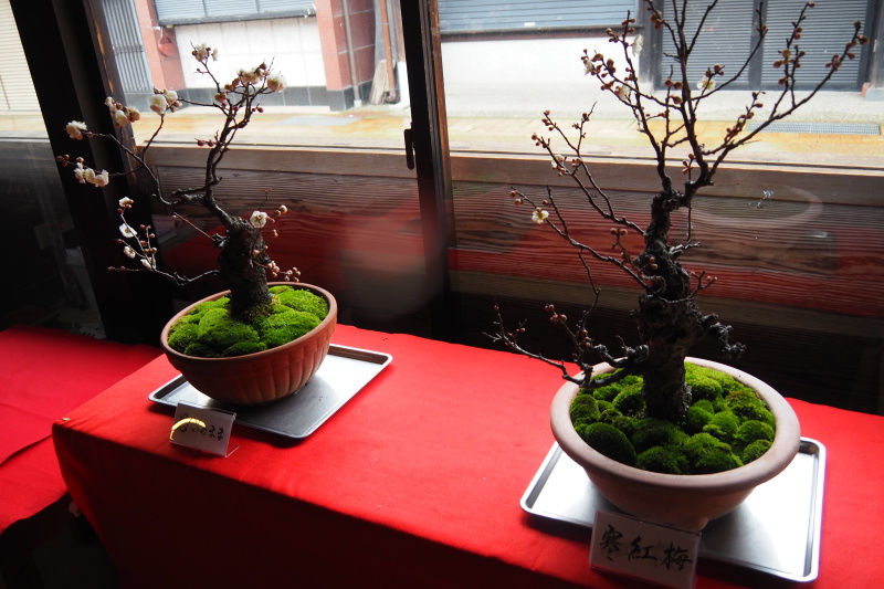 | まちづくり役場。湖北観光情報茶屋「四居家」の入口と盆梅。 | ||