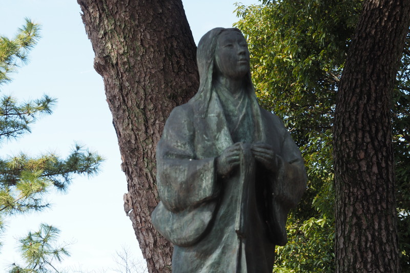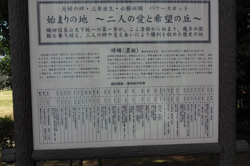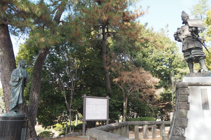 | 清洲城のJRの線路の反対側にある信長と濃姫の像。 | ||