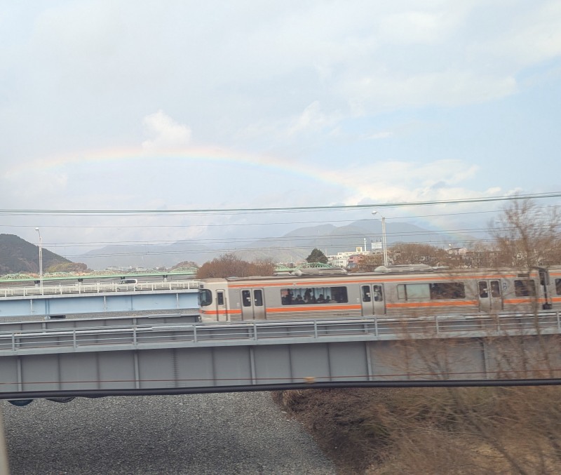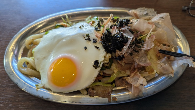 | 静岡駅付近で、虹が見えました。 | 名古屋駅から明治村行きのバスに乗り、小牧市役所前で下車。近くのお店で食べた焼き讃岐うどん。 | |