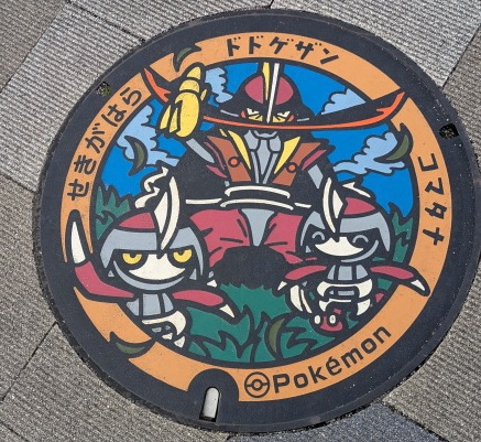 | 関ヶ原合戦400年記念平和の杜。 | 関ヶ原駅近くにあったポケモンのマンホール | |