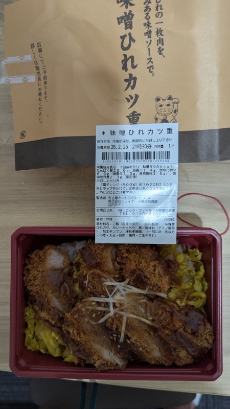 | 雨が上がって夕焼けが見え始めた。 | 名古屋高島屋の地下で買った味噌ひれカツ重。 | |