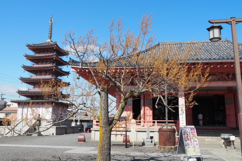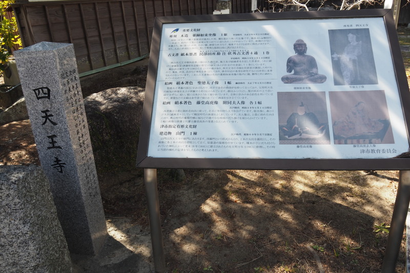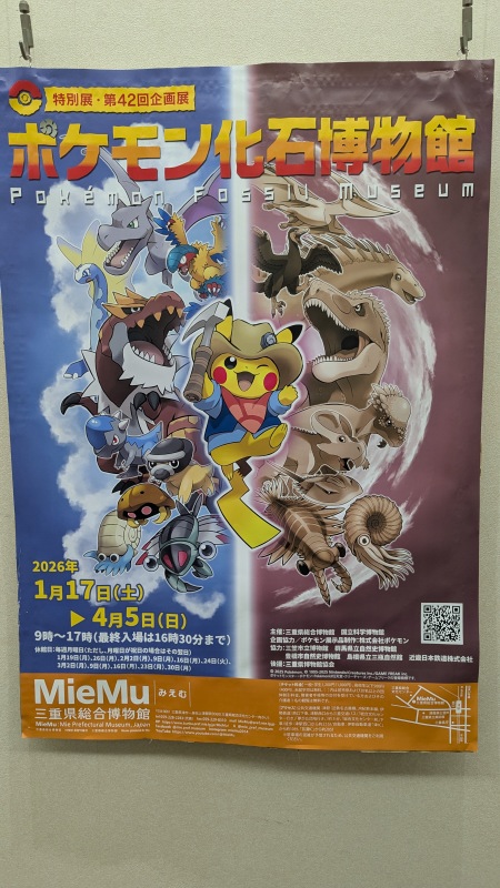 | 「ポケモン化石博物館」というのを三重県総合博物館でやっていた。土日祝日は、予約制というのでポスターのみ。 | 駅から津城へ向かって歩き始めた。途中にある四天王寺。 |