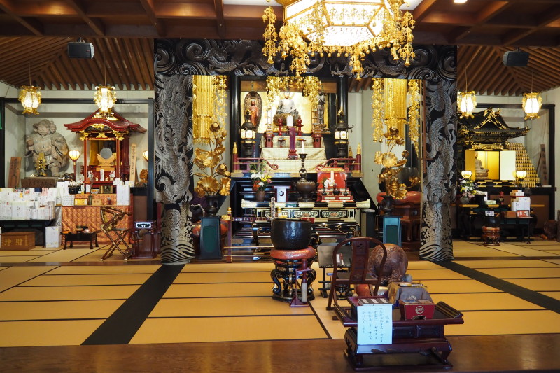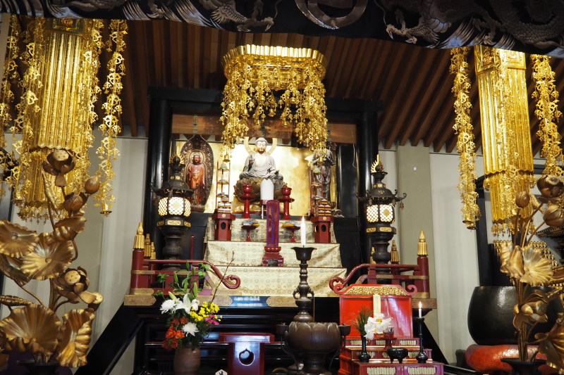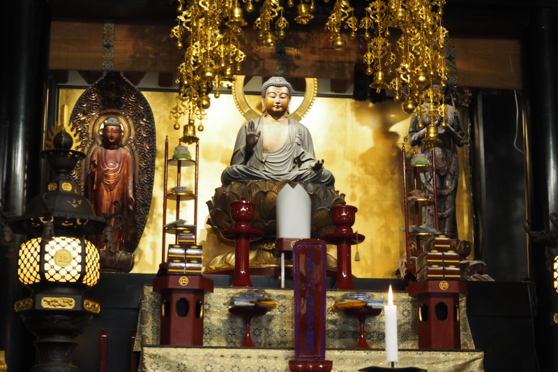 | 本堂の中は拝観可で、写真撮影も可。 | 本堂の釈迦如来など。 |