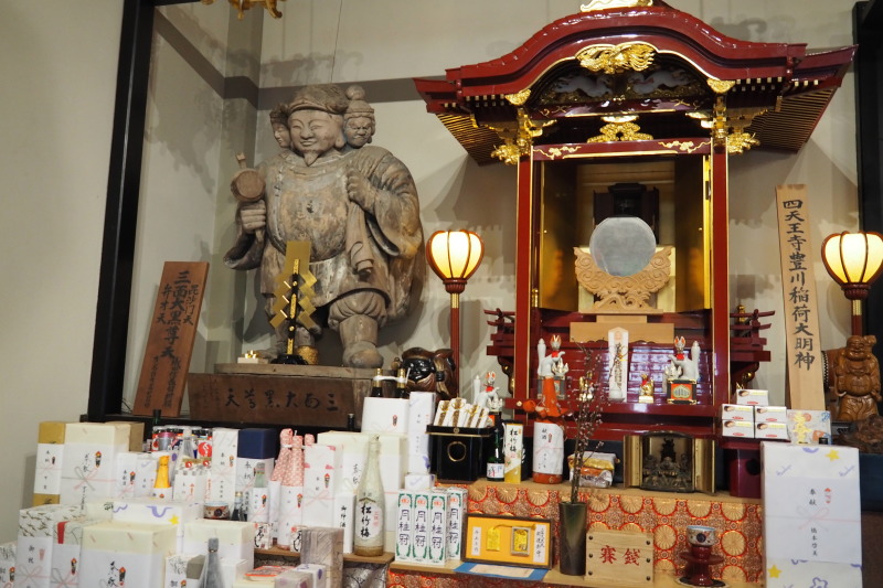| 向かって左から阿弥陀如来、釈迦如来、馬頭観音。 | 三面大黒天増と豊川稲荷大明神。 |