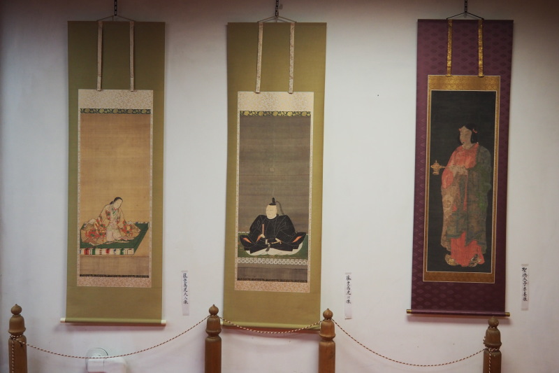 | 左から久芳院(高虎夫人)像、高虎像、聖徳太子像。 | |