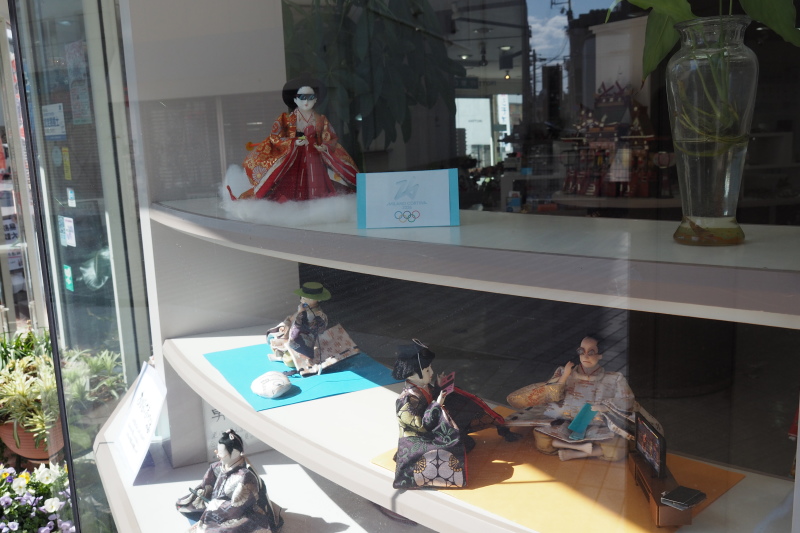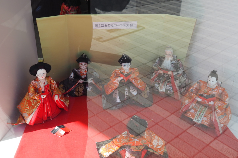 | 観音寺付近の商店街の眼鏡店のひな人形。みんなメガネをかけている。 | |