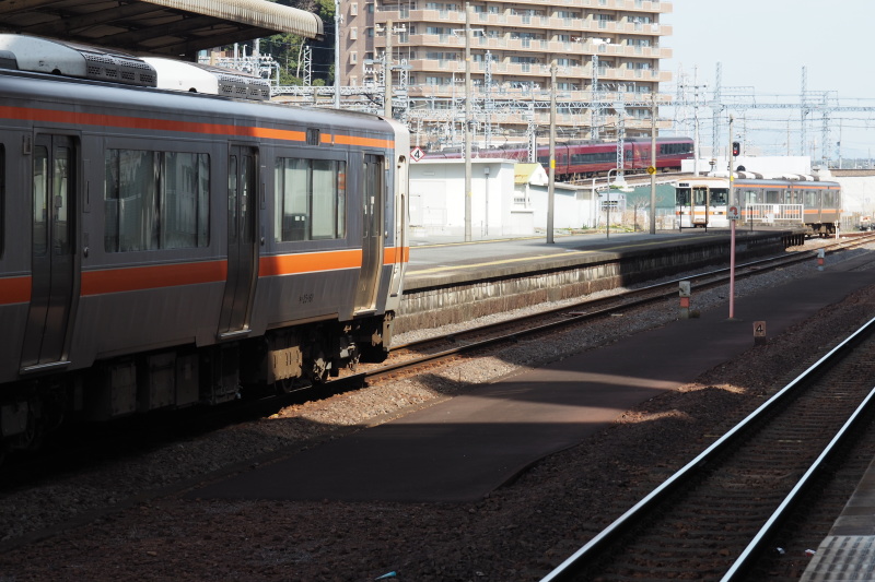 | 津駅の列車。 | 津駅の列車。近鉄は、坂を上って名古屋方面へ。 |