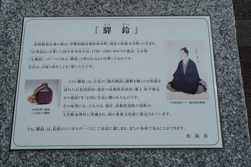 | 松阪は、本居宣長の出身地。駅鈴が松阪のシンボルになっている。 | |