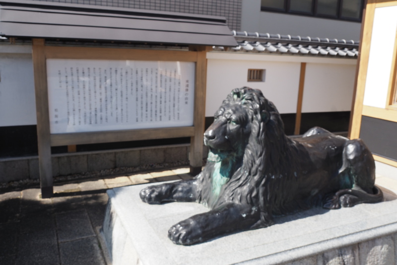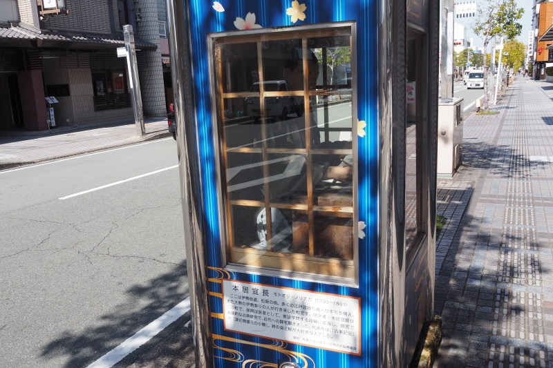 | 本居宣長像がボックスの中にある。 | 三越の創業者の地なので、シンボルのライオン像がある。 |