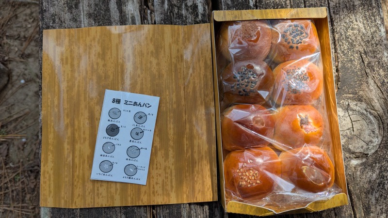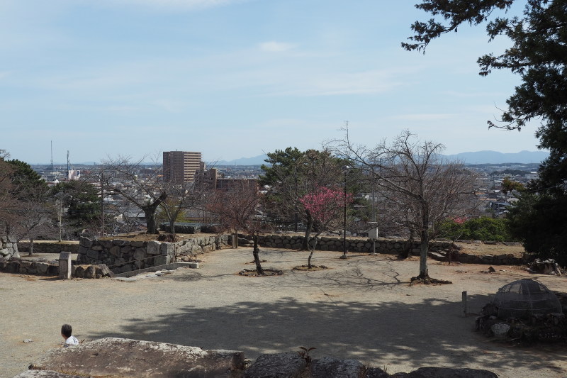 | 前日名古屋駅で買ったミニあんパン八個セット。昼食。 | 天守閣跡付近からの景色。 |