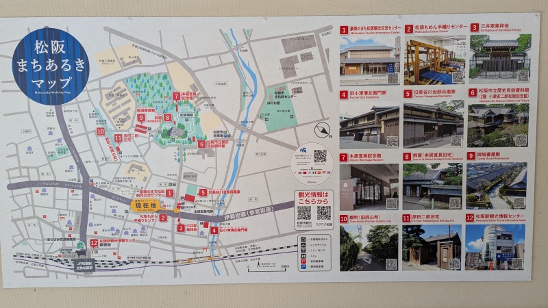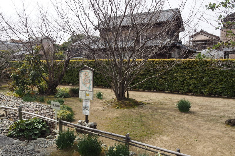 | 松阪まちあるきマップ。 | 豪商ポケットパークから、三ツ池発祥の地方面を見る。 |
