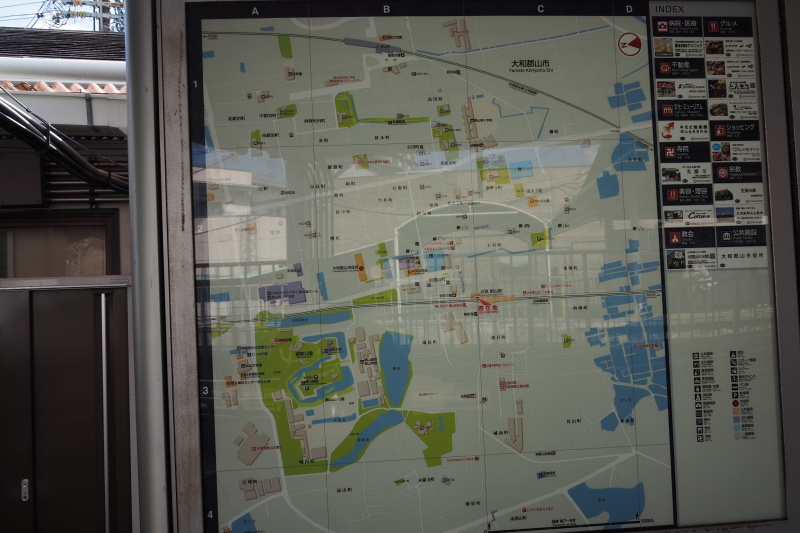 | 外堀緑地北門。 | JR大和郡山駅。 |