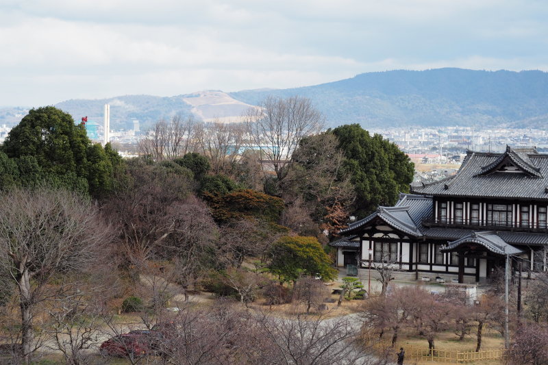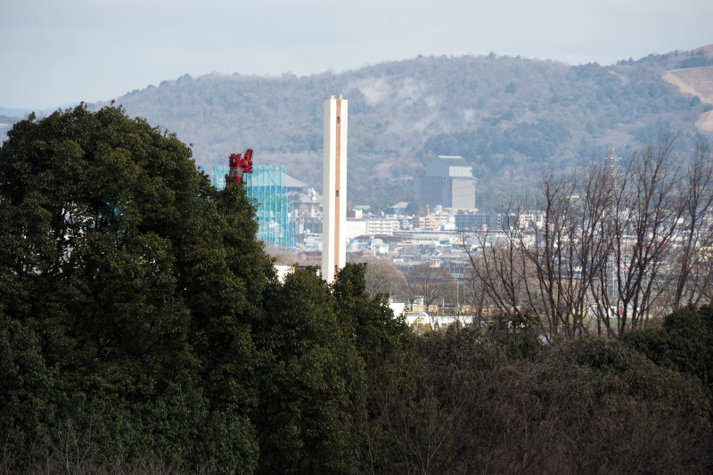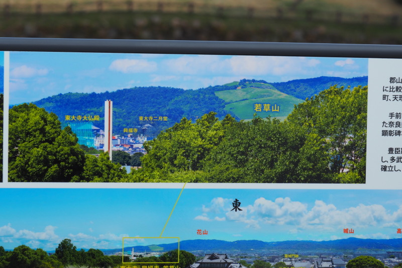 | 天守台あとから東大寺方面。白いタワーの左側が東大寺。 | |