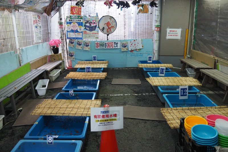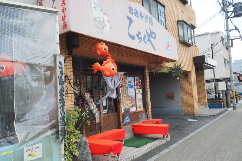 | 「こちくや」土産物屋だが、この中で、一年中金魚すくいができる。 | |