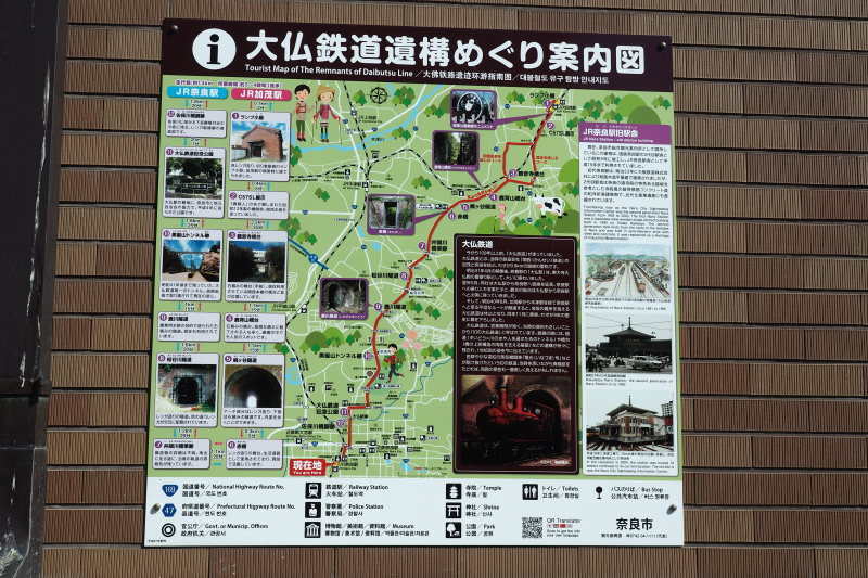 | JR奈良駅。 | JR奈良駅の観光案内所にあった「大仏鉄道遺構めぐり案内図」 |