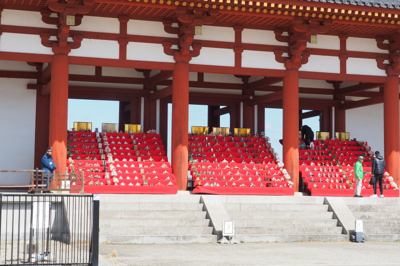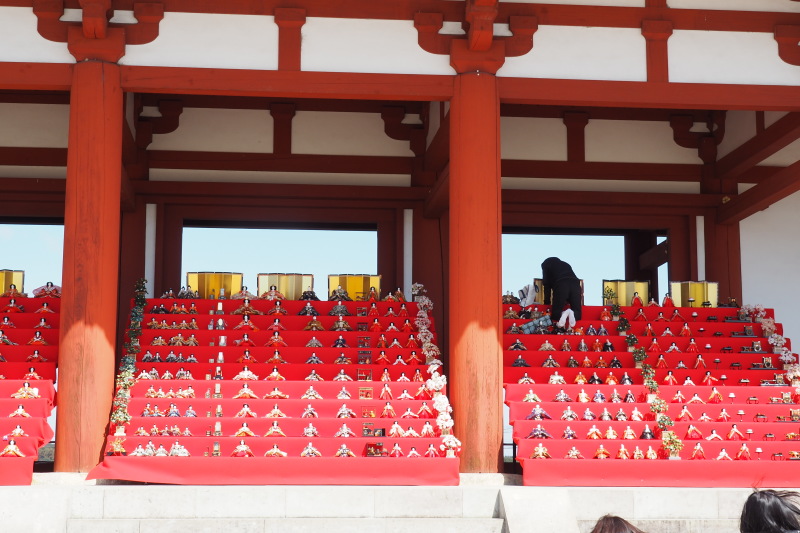 | 朱雀門に飾られたひな人形。 | |