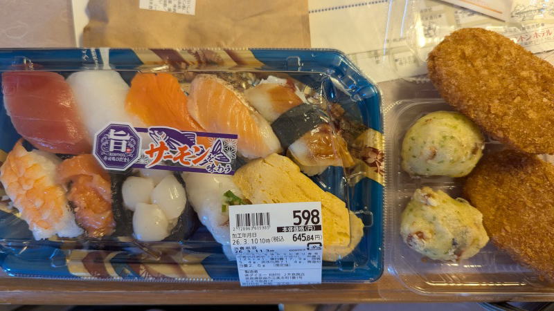 ←近鉄奈良駅近くのスーパーで買った晩ご飯。 |